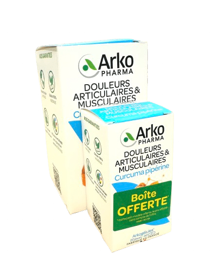 ARKO CURCUMA PIPERINE Le rhizome de Curcuma contribue à maintenir la flexibilité et le confort articulaire. Le Poivre noir, qui renferme de la pipérine, augmente l’absorption du Curcuma.