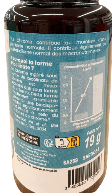 CHROME PICOLINATE SANTAROME est un supplément nutritionnel qui peut aider à réguler la glycémie, la perte de poids et les fringales.