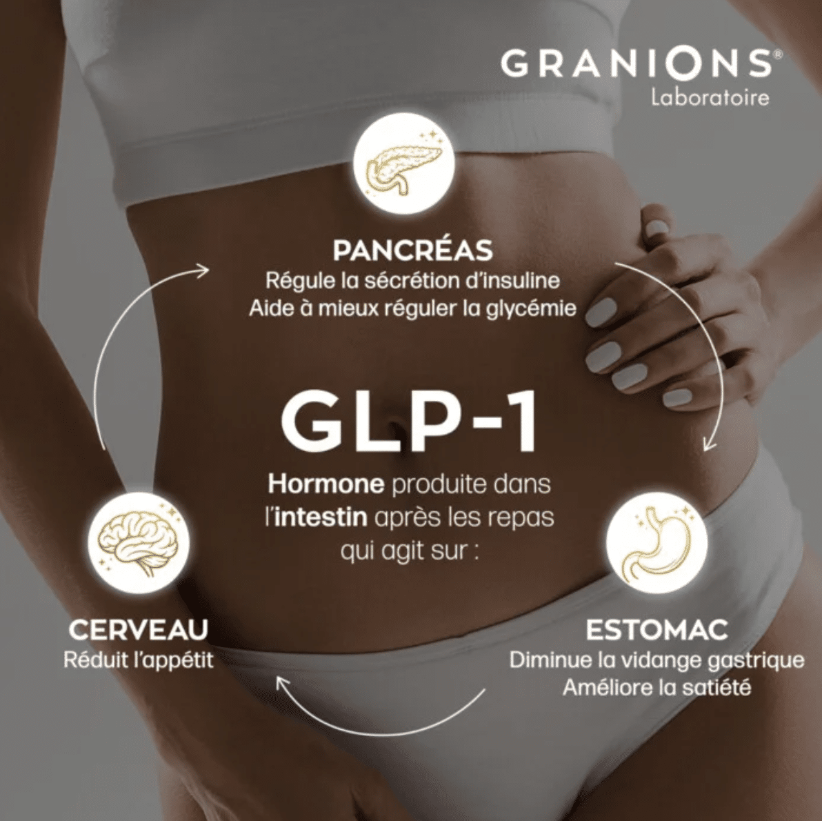 Le GLP-1 agit à plusieurs niveaux de l’organisme. Il contribue à envoyer au cerveau des signaux de rassasiement, aide à mieux réguler la sécrétion d’insuline et participe au ralentissement de la vidange gastrique. Résultat : la faim peut être mieux maîtrisée et la satiété plus durable.