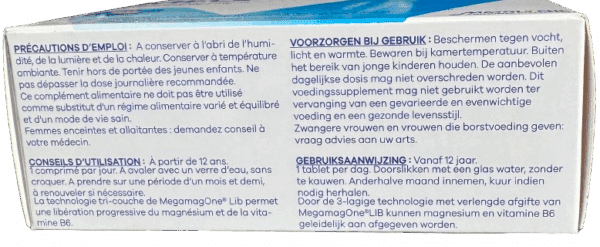 MEGAMAG ONE LIB 48 apporte en 1 seul comprimé par jour la quantité de magnésium (origine marine) et vitamine B6