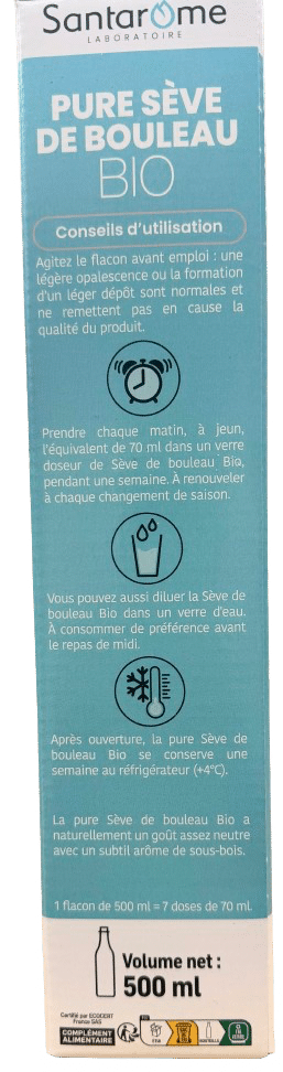 SANTAROME PURE SEVE DE BOULEAU 100% pure, sans oxydation, sans pasteurisation et sans conservateur ,