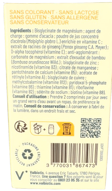VALBIOTIS PLUS MULTI VITAMINES est un complément alimentaire pour le soutien du métabolisme énergétique et le maintien des performances physiques et mentales .